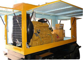 康巴什柴油发电机组/移动柴油发电机组设计独具创新,机动性高、重心低、制动安全、制造精良、外形美观。 康巴什拖车车架采用槽梁焊接成框架结构,节点选择合理、强度高、刚性好;同时装有钢板弹簧悬架结构;拖车采用高度可调节插销式牵引架,适用于各种高度牵引车;采用圆形钢管焊接直通式车轴,结构紧凑,安全可靠;车架四角设有机械式支撑装置,配备惯性行车制动、驻车制动和脱离应急制动,确保机组在各种状况下的安全;车架前端设有支撑轮,具备承受机组垂直载荷的功能的同时还具备导向功能;整车配备转向和刹车指示灯,同时装有尾灯标准插头